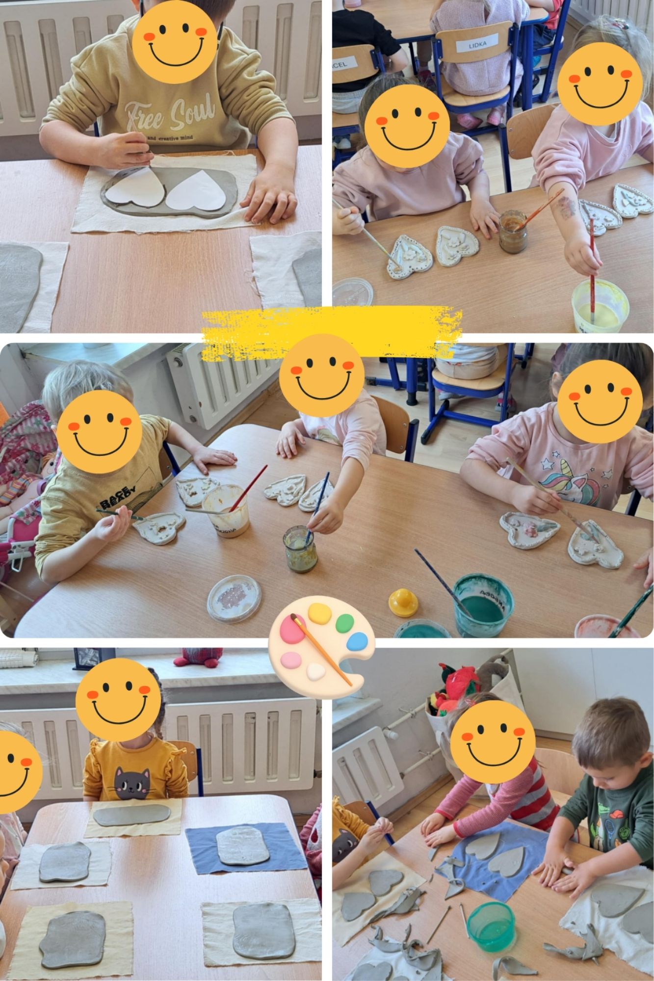 Grupa Krasnale z wielkim zaangażowaniem i radością uczestniczyła w wyjątkowych warsztatach ceramicznych, podczas których dzieci przygotowywały piękne prezenty z okazji Dnia Babci i Dziadka. Zajęcia miały dwuetapowy charakter. Podczas pierwszego spotkania mali artyści samodzielnie tworzyli ceramiczne prace, nadając im kształt i wyjątkowy charakter. Dzieci z ogromnym skupieniem formowały glinę, rozwijając swoją wyobraźnię oraz zdolności manualne. W drugim etapie warsztatów przyszedł czas na szkliwienie gotowych form. Krasnale wybierały kolory, dekorowały swoje prace i nadawały im ostateczny wygląd, wkładając w każdy detal dużo serca i ciepłych myśli o swoich Babciach i Dziadkach.