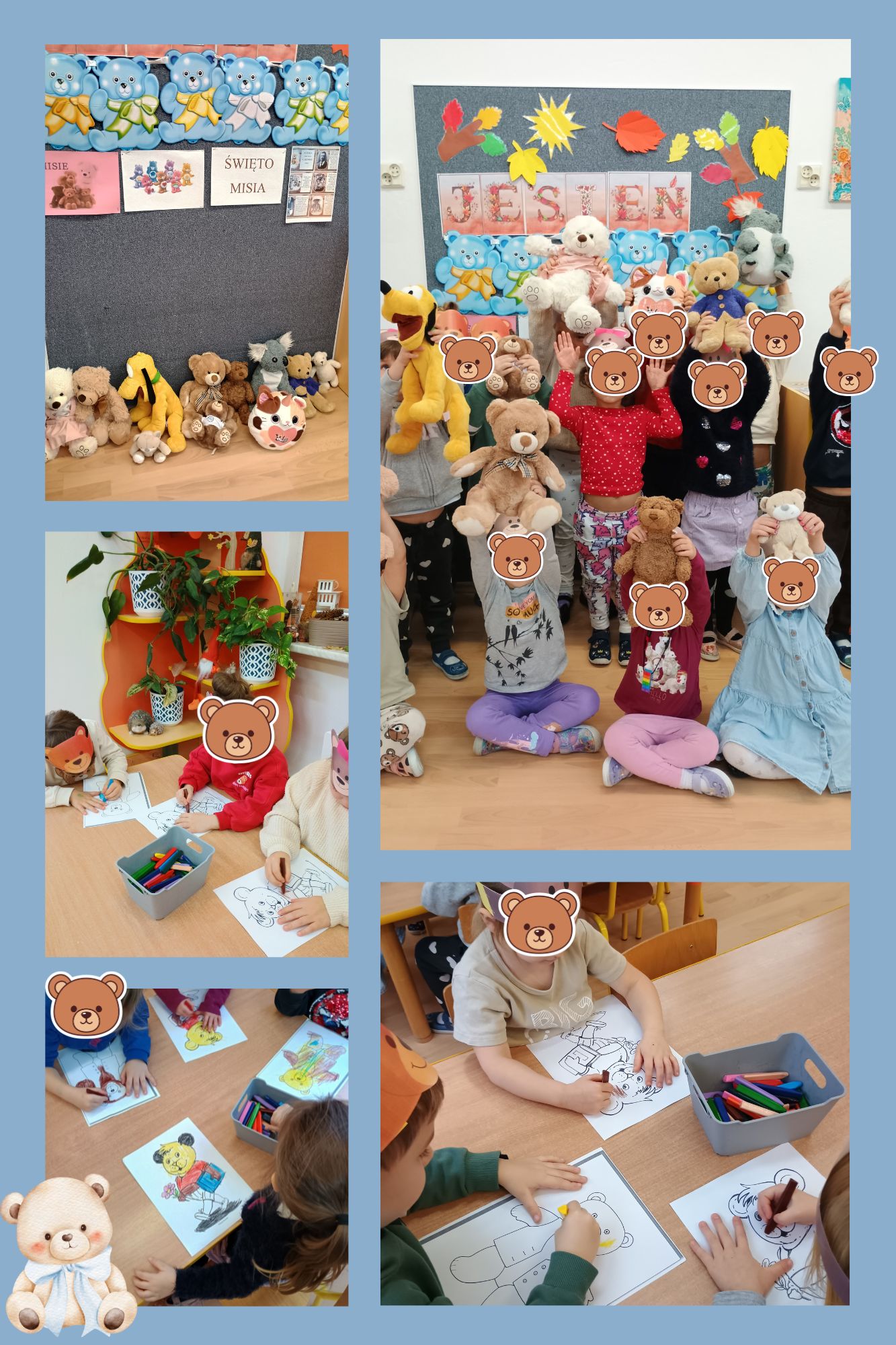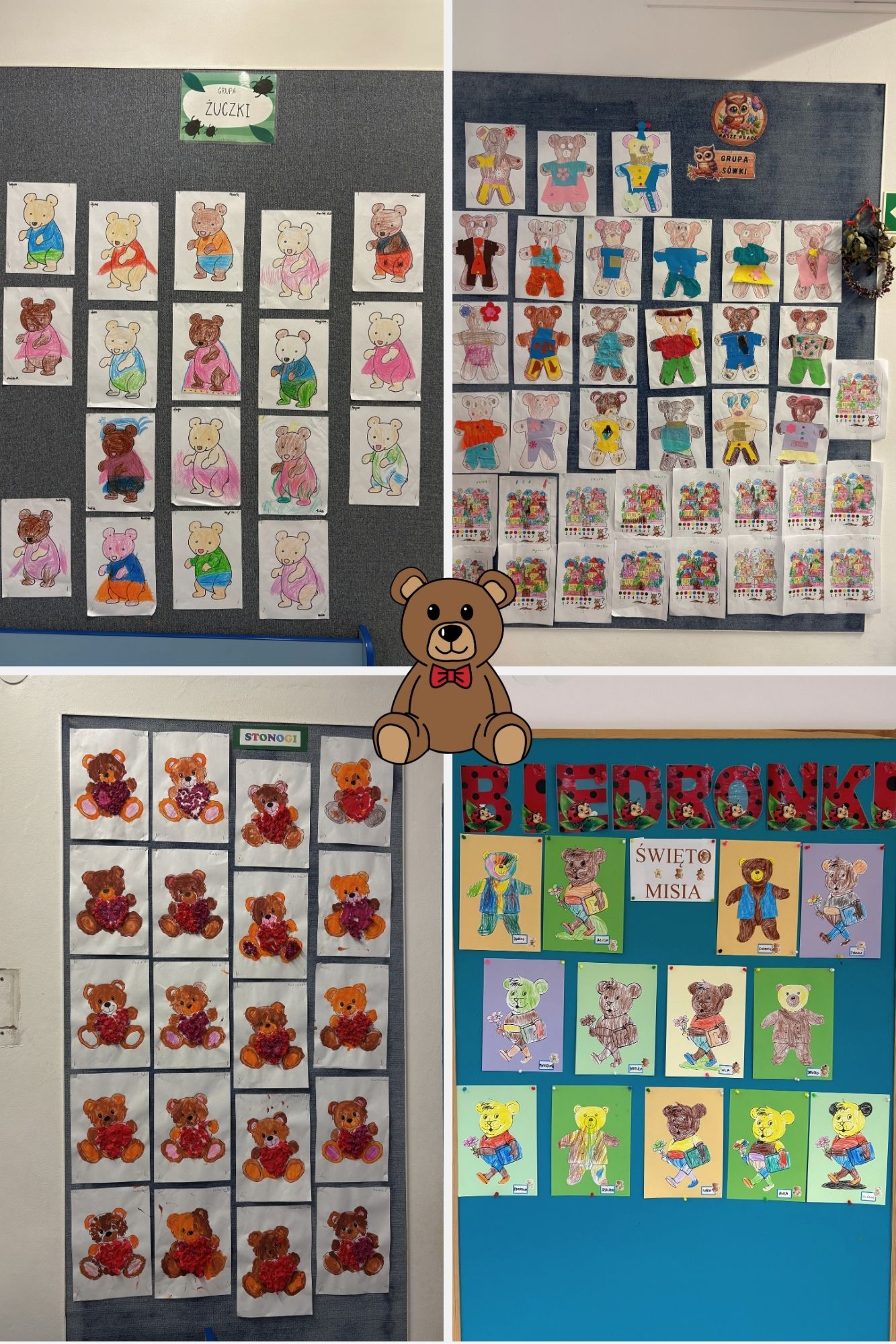 W naszym przedszkolu odbyły się radosne obchody Dnia Misia — każde dziecko miało okazję przynieść ze sobą swojego ukochanego pluszaka. Było mnóstwo zabawy, śmiechu i misiowej radości. Dzieci przygotowały piękne prace plastyczne inspirowane misiami — rysowały, wyklejały, tworzyły własne kolorowe misie. Nasze młodsze przedszkolaki tańczyły, śpiewały
