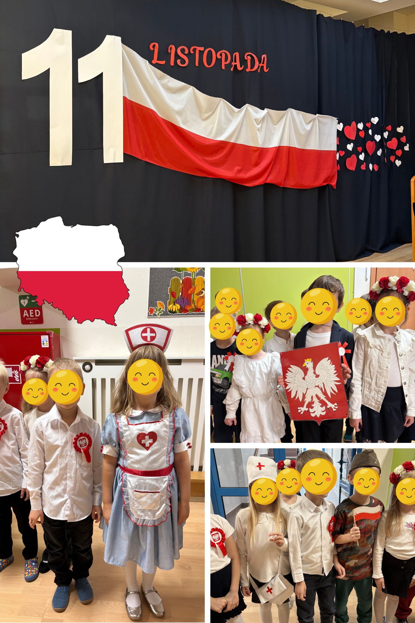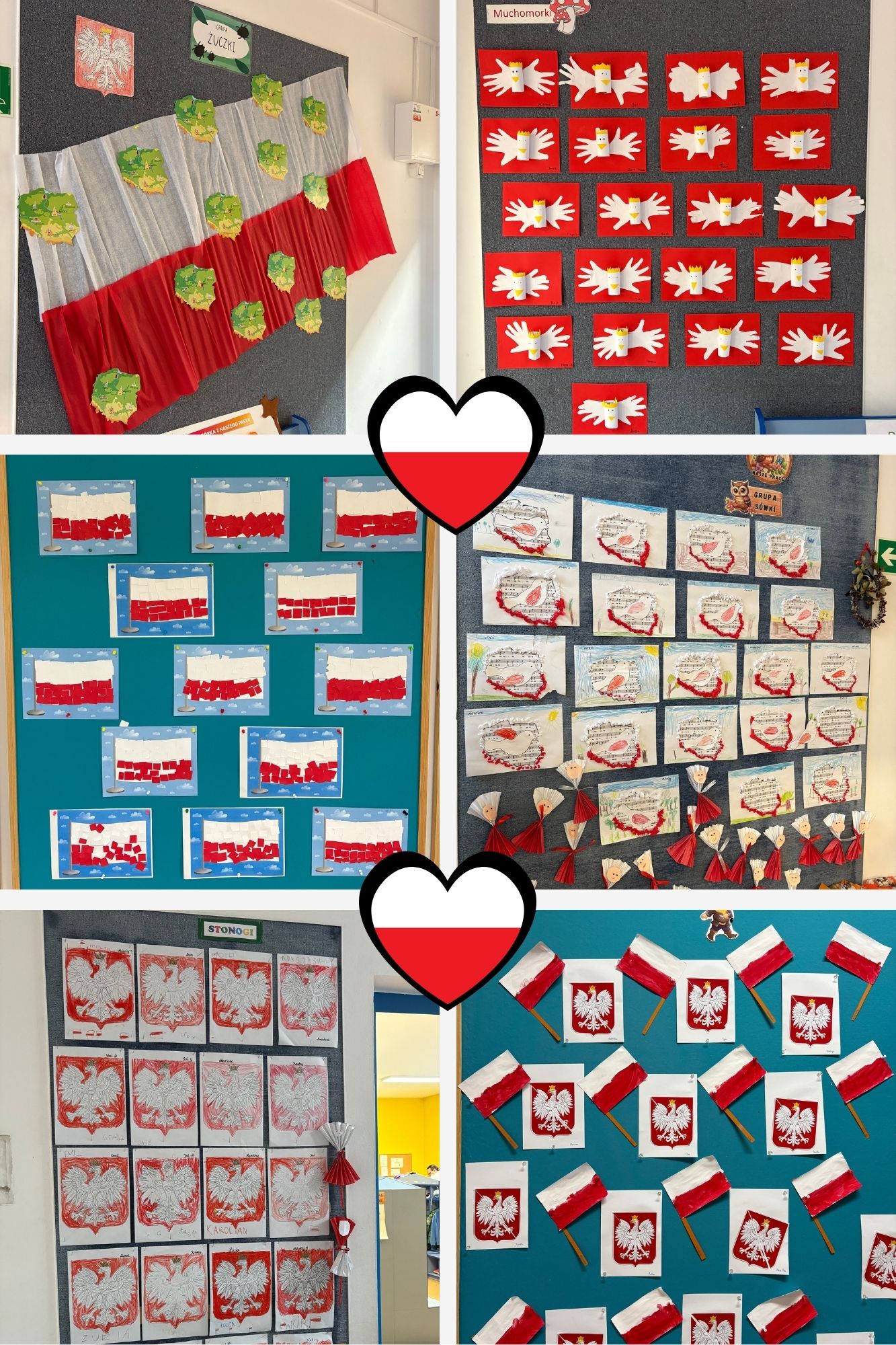 o tematyce patriotycznej. Dzieci były odświętnie ubrane – królowały barwy biało-czerwone, a wśród dekoracji pojawiły się symbole narodowe: flagi, godła i kotyliony. Przedszkolaki przygotowały również piękne prace plastyczne poświęcone Polsce i jej symbolom, które obecnie zdobią nasze tablice i sale.