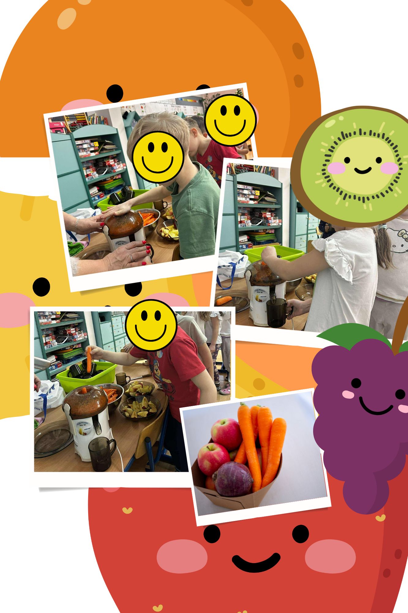Zajęcia były doskonałą okazją do rozwijania samodzielności, współpracy oraz kształtowania zdrowych nawyków żywieniowych. Na zakończenie wszyscy z radością degustowali przygotowany sok, który okazał się prawdziwym hitem!